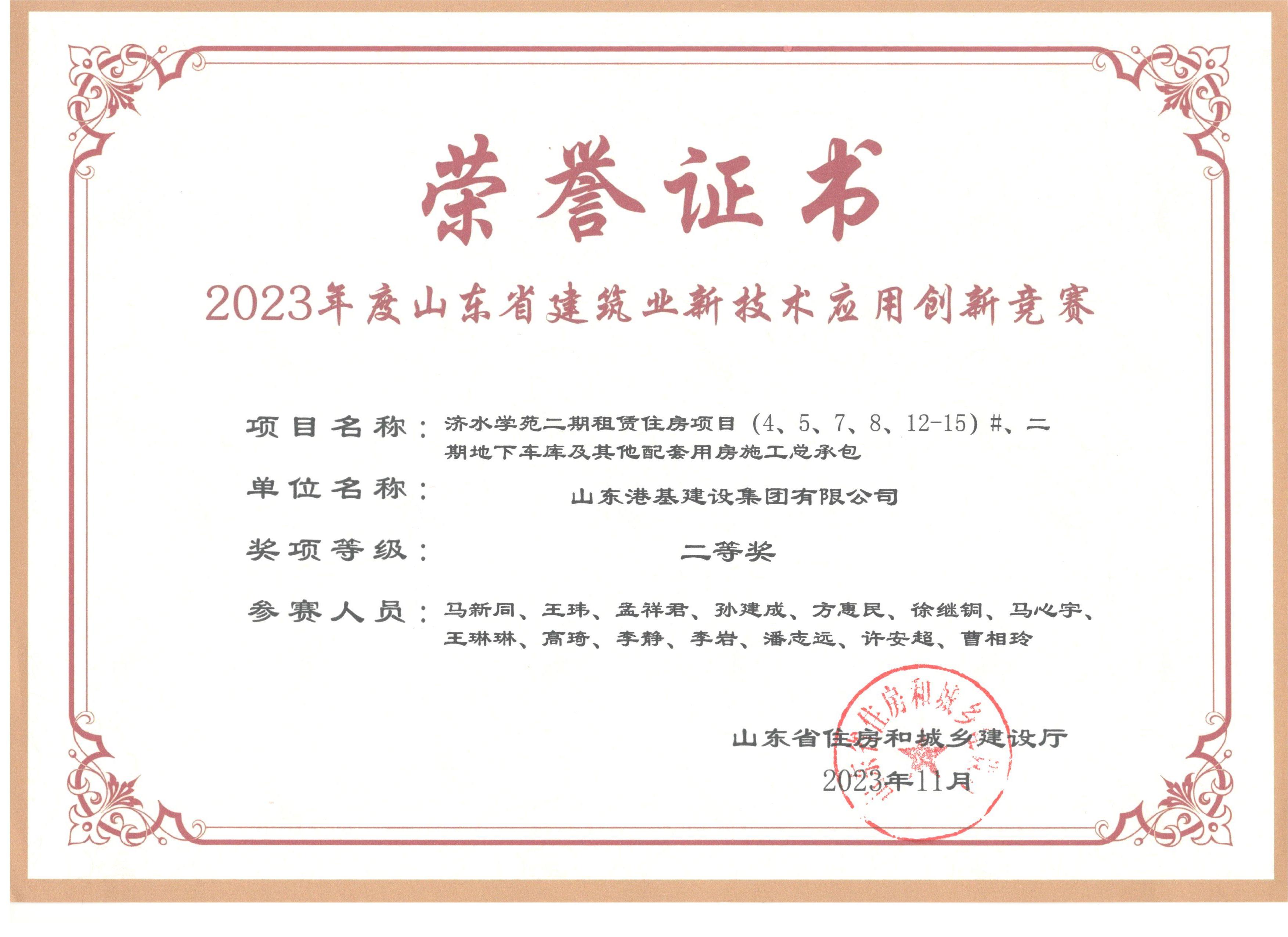 山東省建筑業(yè)新技術應用創(chuàng)新競賽二等獎 |