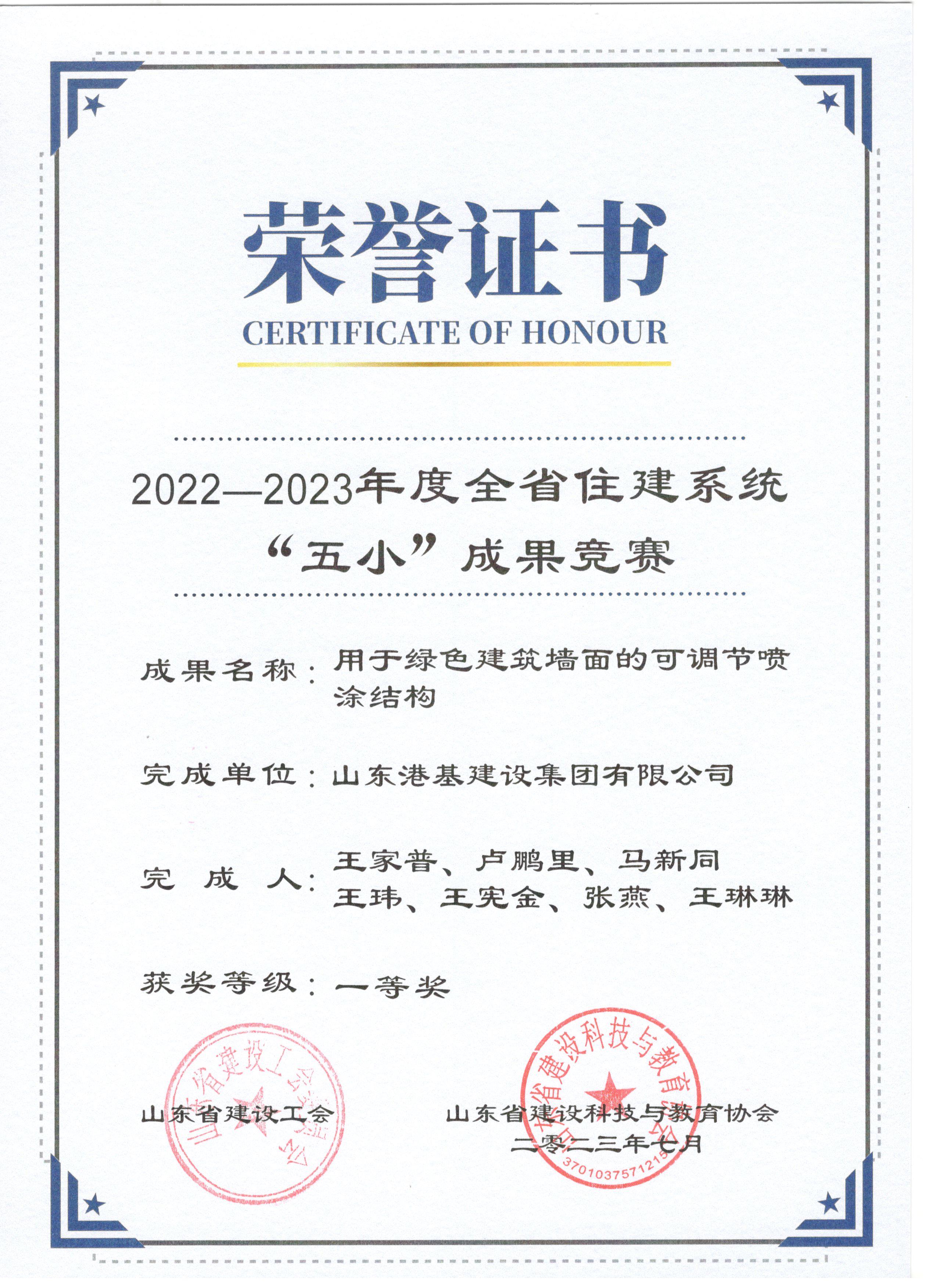 山東省住建系統(tǒng)“五小”成果競賽一等獎